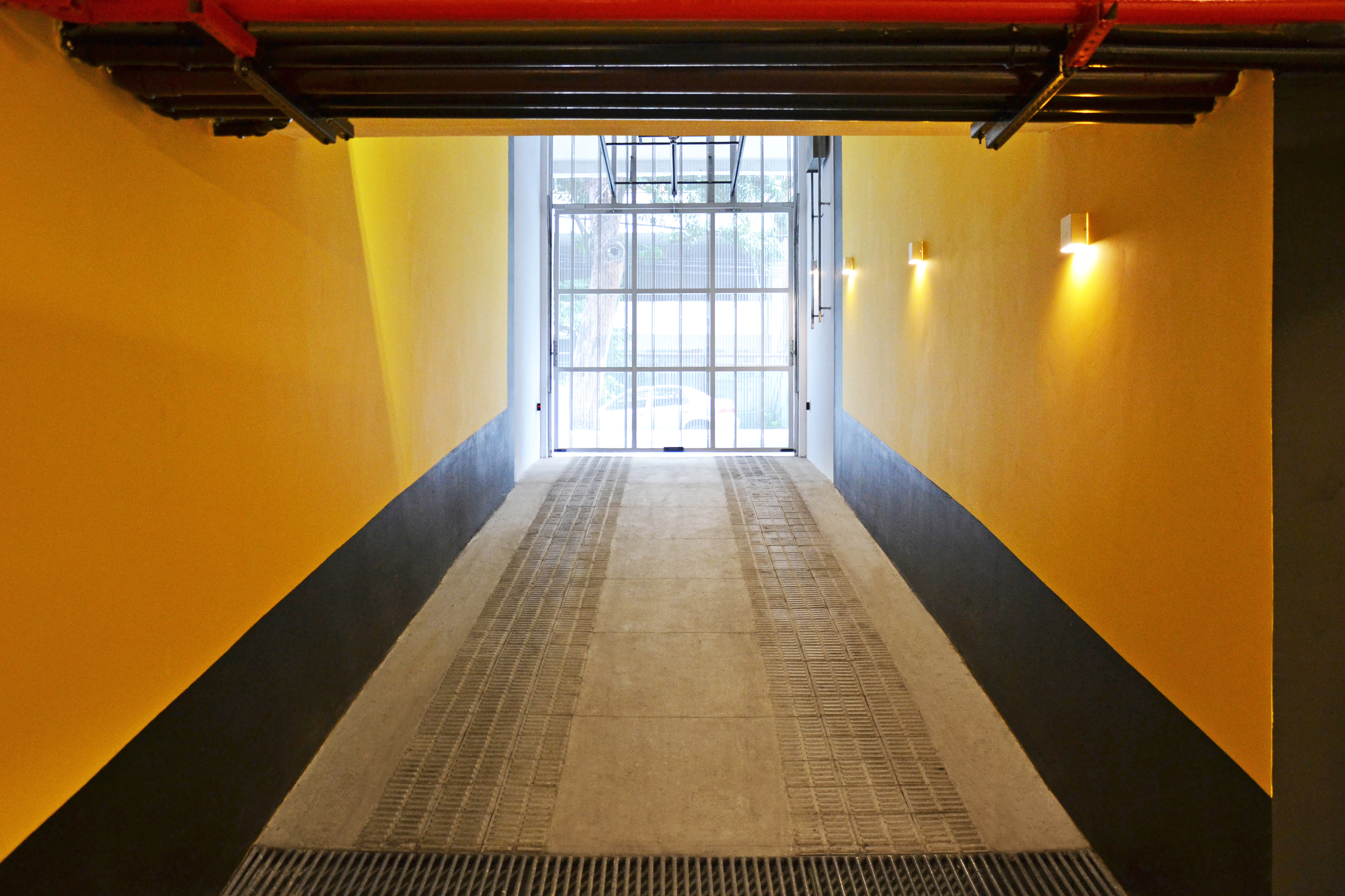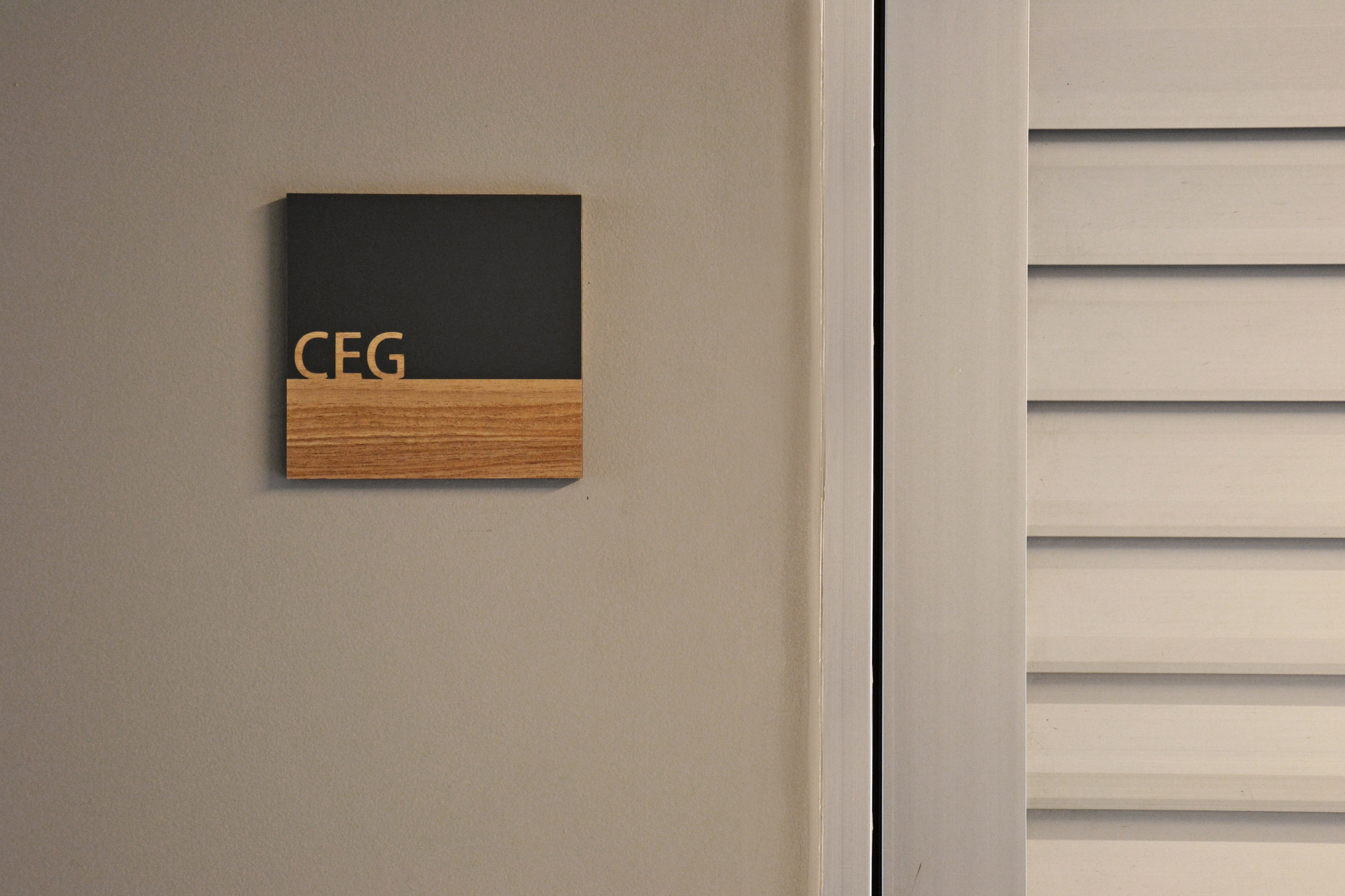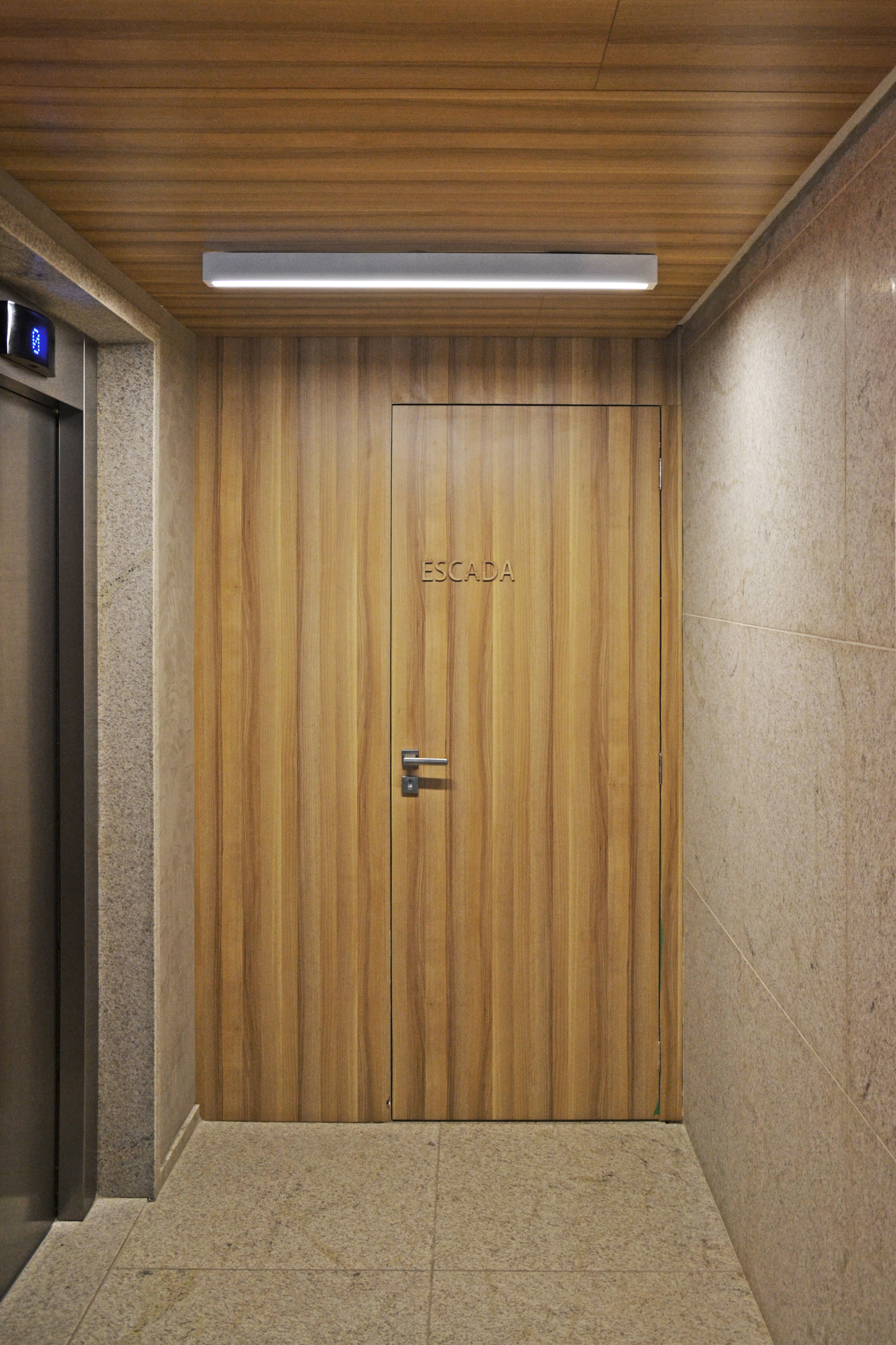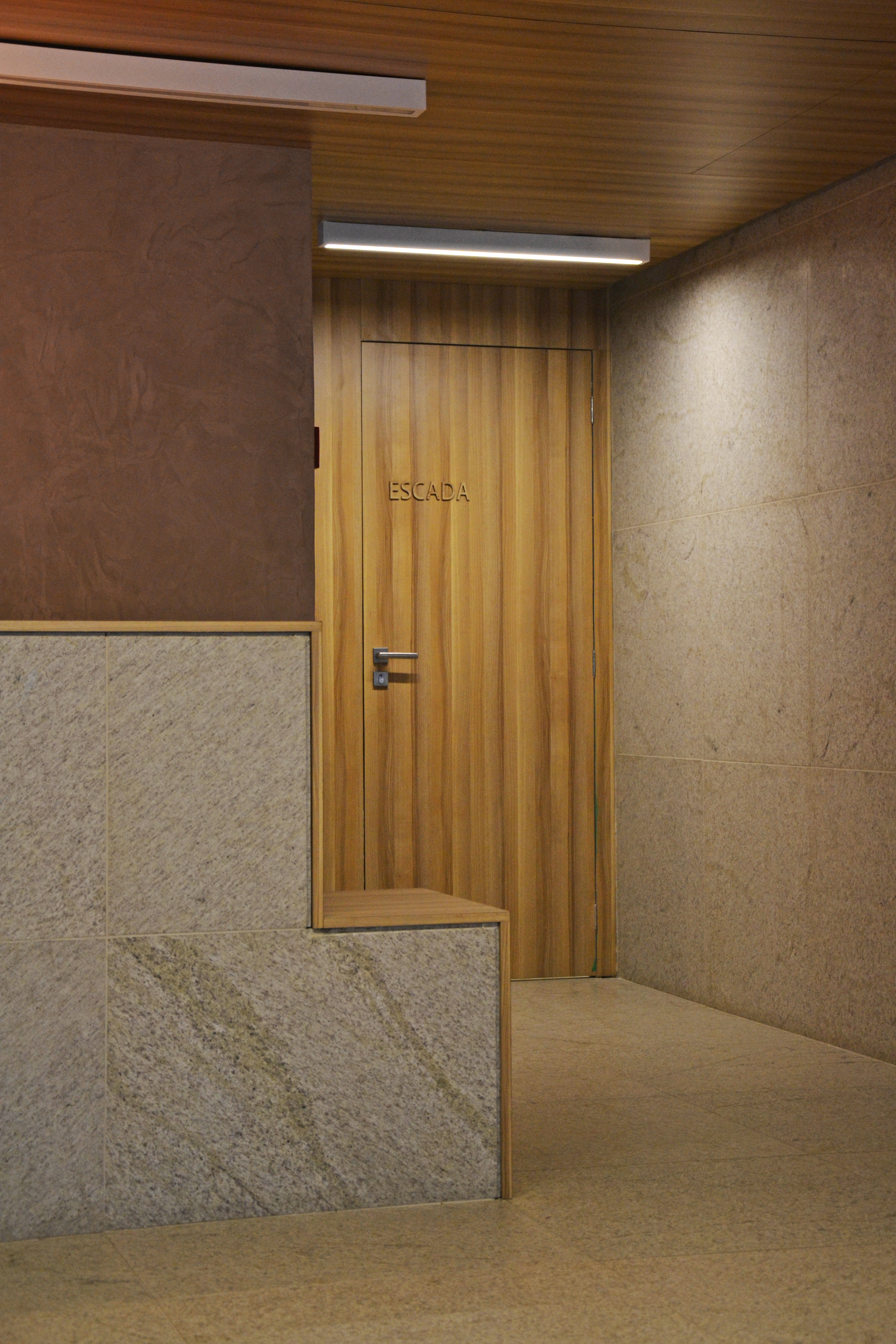 Por isso, optamos por uma sinalização com o mínimo de interferência na arquitetura, utilizando apenas letras destacadas com a mesma madeira das paredes nos corredores dos andares. Para indicar os apartamentos, a mesma textura foi mantida, mas sobre um fundo de cimento escuro, ideal para destacar o número da unidade de maneira sofisticada e simples.