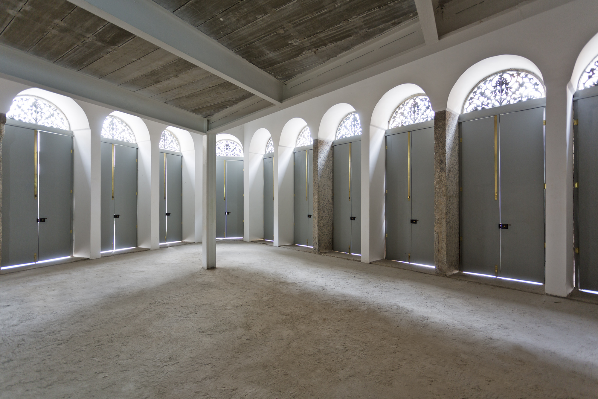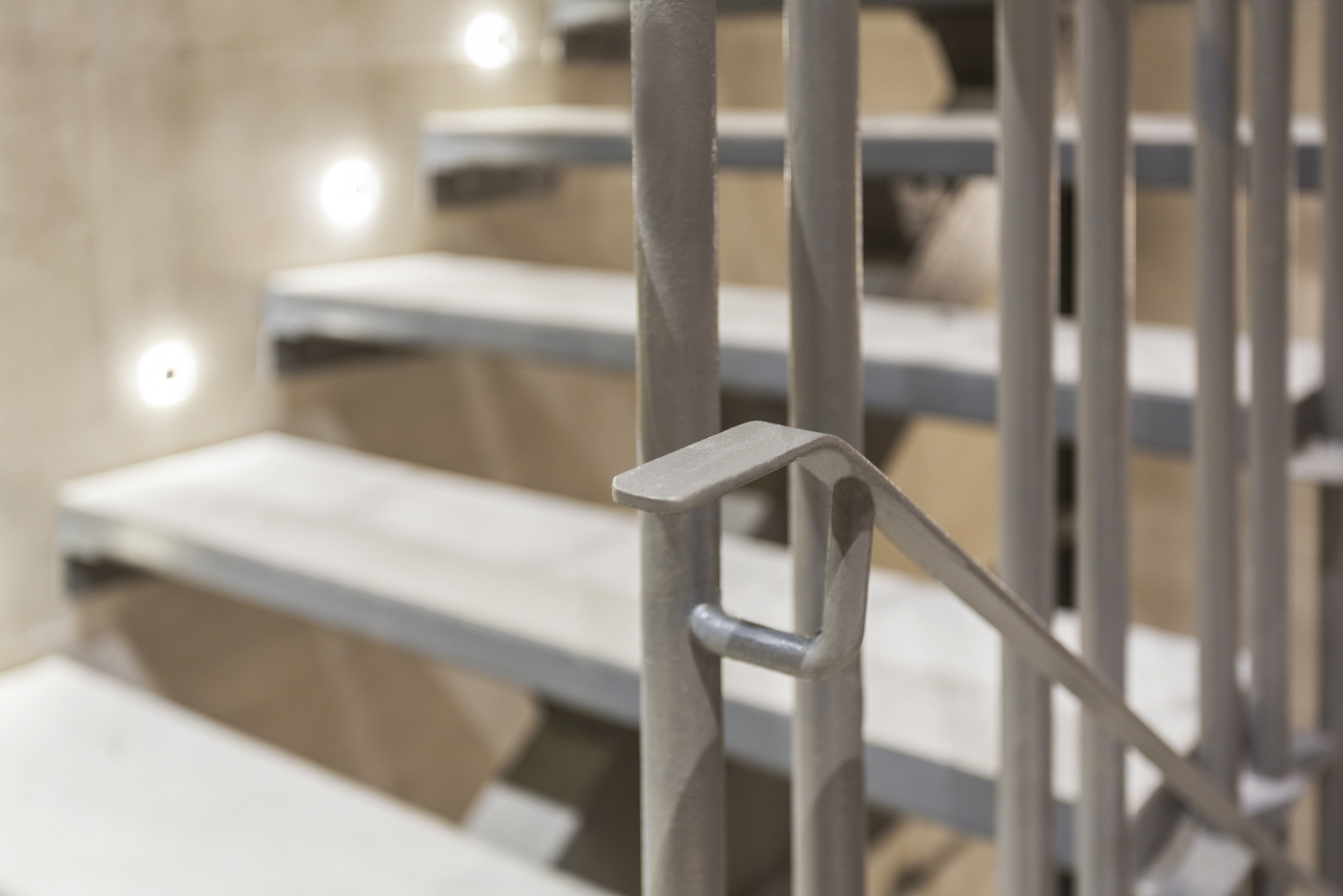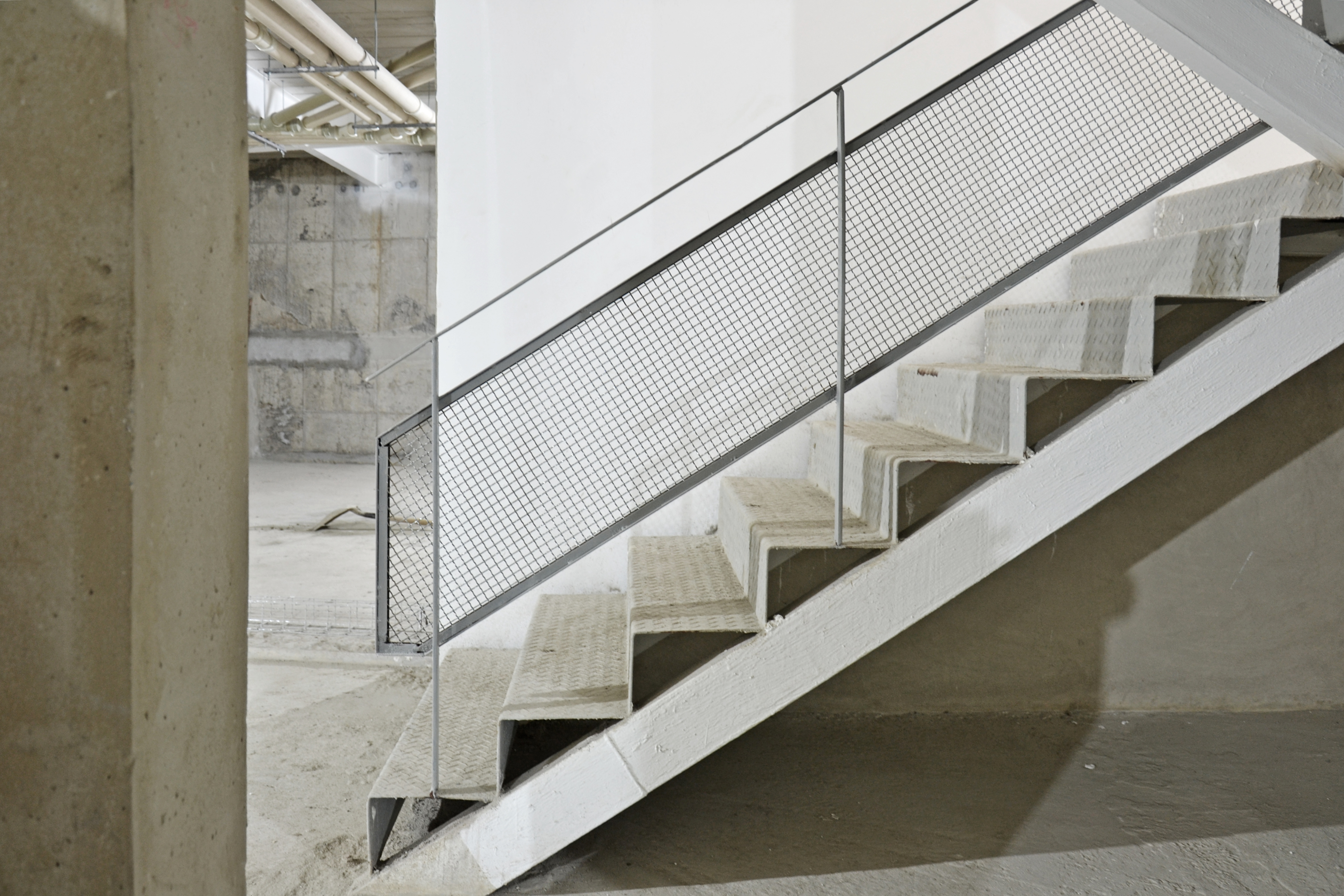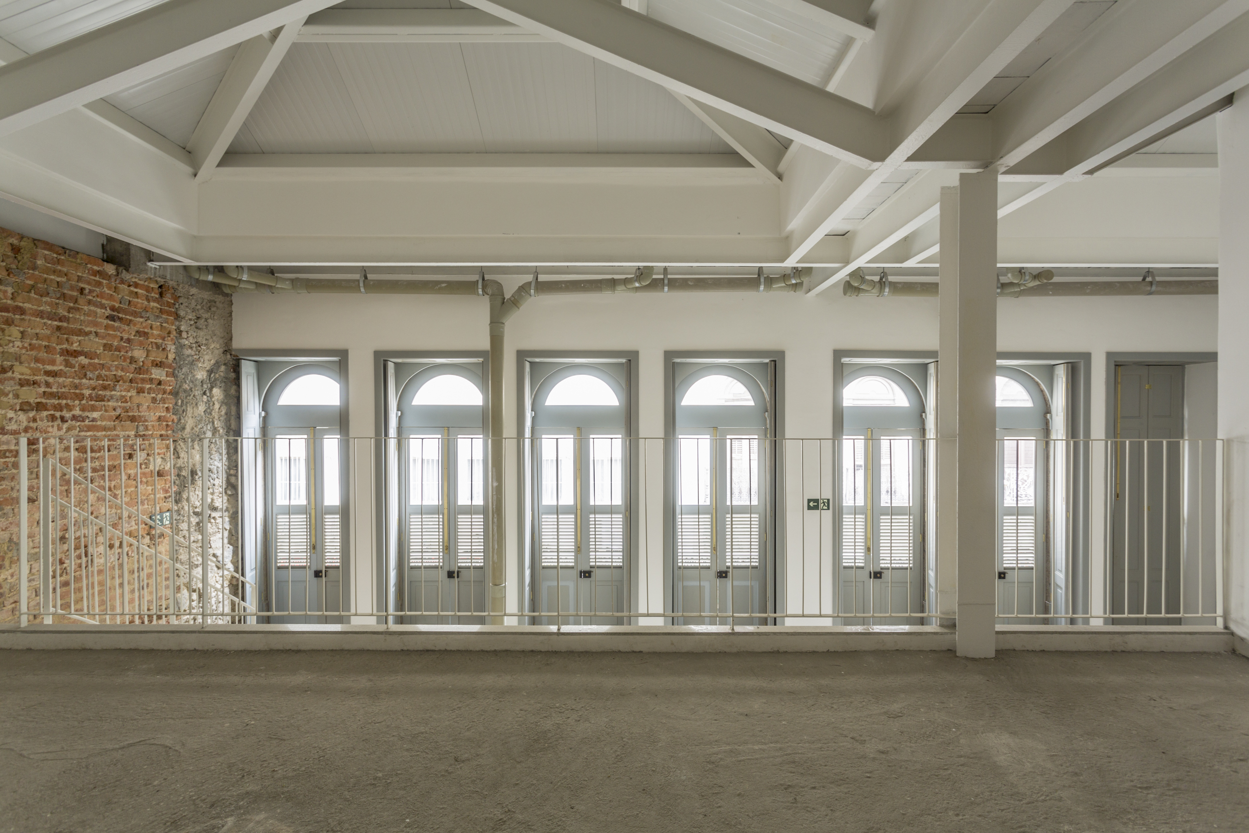 Determinantemente, tem-se a implementação da tecnologia no trato dos elementos arquitetônicos. A estrutura metálica foi pensada como redutor de esforços físicos incidentes nas fachadas históricas. Separando-se a estrutura das fachadas, permitiu sua recuperação e maior liberdade no trato do interior da edificação, implementando-se halls de acesso às circulações verticais e na conformação dos espaços das lojas e salas comerciais. As lojas são constituídas por subsolo, térreo e mezanino. A nova estrutura metálica possibilitou o implemento de um pavimento subsolo e também a perda do caráter estrutural dos baldrames originais. Permitiu-se assim a conservação dos mesmos, destacando o seu valor histórico de duas maneiras: a manutenção in loco dos baldrames, estruturados por pilares metálicos, e o acondicionamento dos mesmos em invólucros no piso, de onde abrem-se janelas para sua. A parte desmontada dos baldrames foi reaproveitada na composição de novas paredes, criando uma textura nova que, no entanto, remete aos materiais do passado. Otimizaram-se os espaços, resultando num total de quatro pavimentos, em contraposição aos dois originais. Para o pavimento superior, composto pelas sete salas comerciais, foi proposto o rebaixo da laje do pavimento próxima às fachadas, de modo a se permitir o acesso das fenestras e sacadas históricas, garantindo o seu uso diante da reconversão da edificação. A concepção de uma claraboia além de remeter estilo da época dos sobrados interage com o mezanino e vãos de fachada favorecendo à circulação da luz natural.