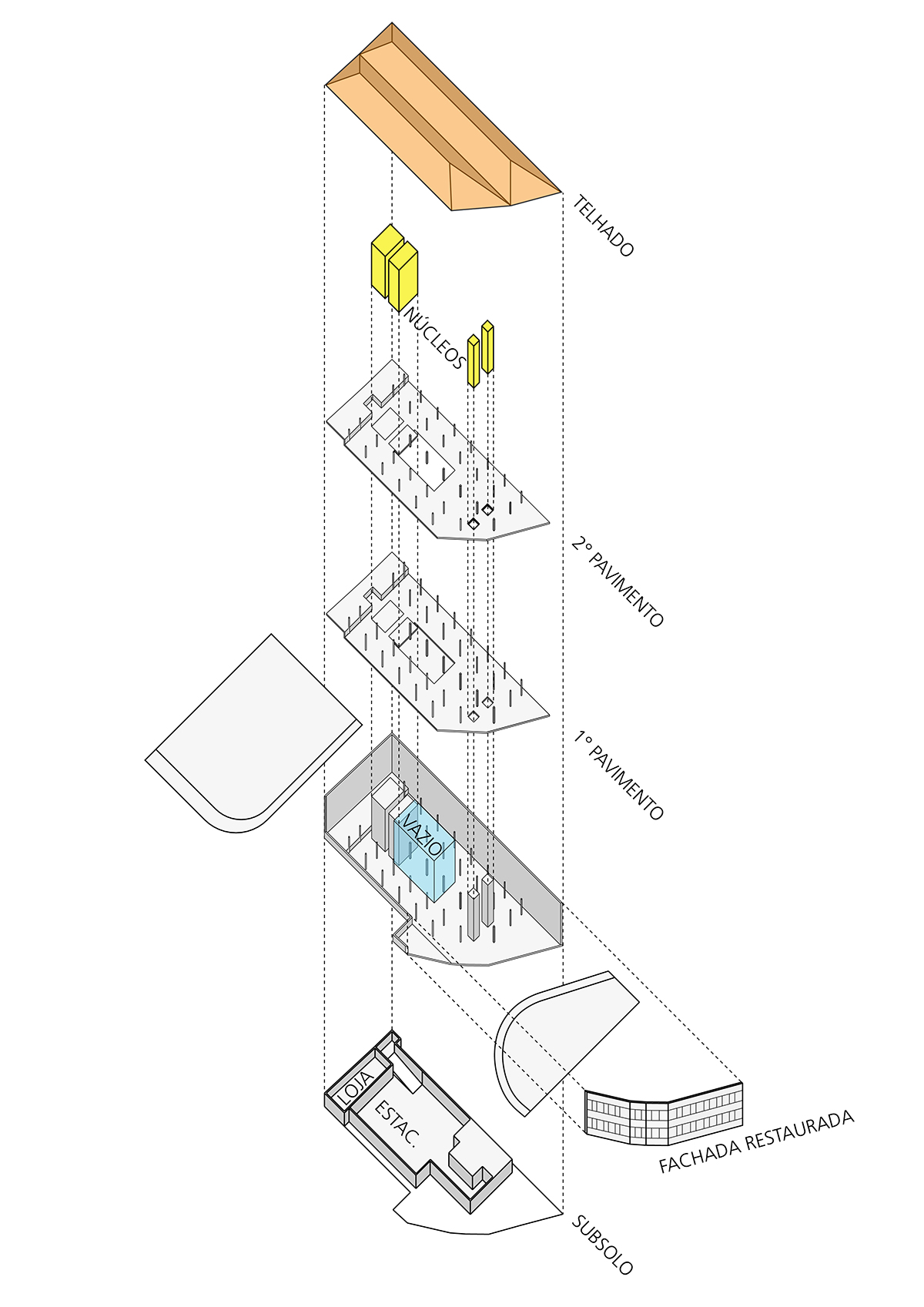 O projeto nasce dentro do processo de revitalização da área portuária do Rio de Janeiro, propondo o retrofit de um galpão em estado de degradação.