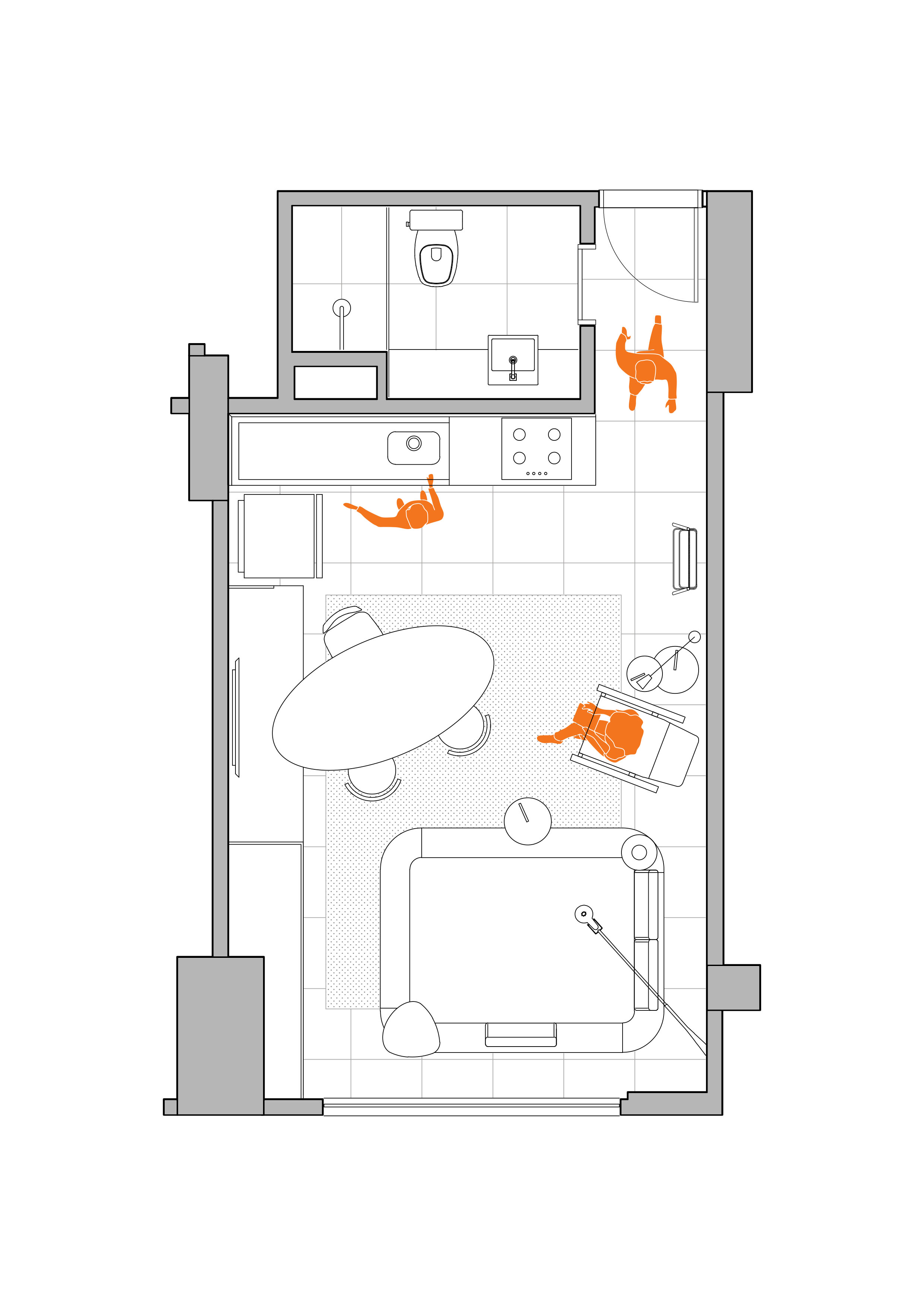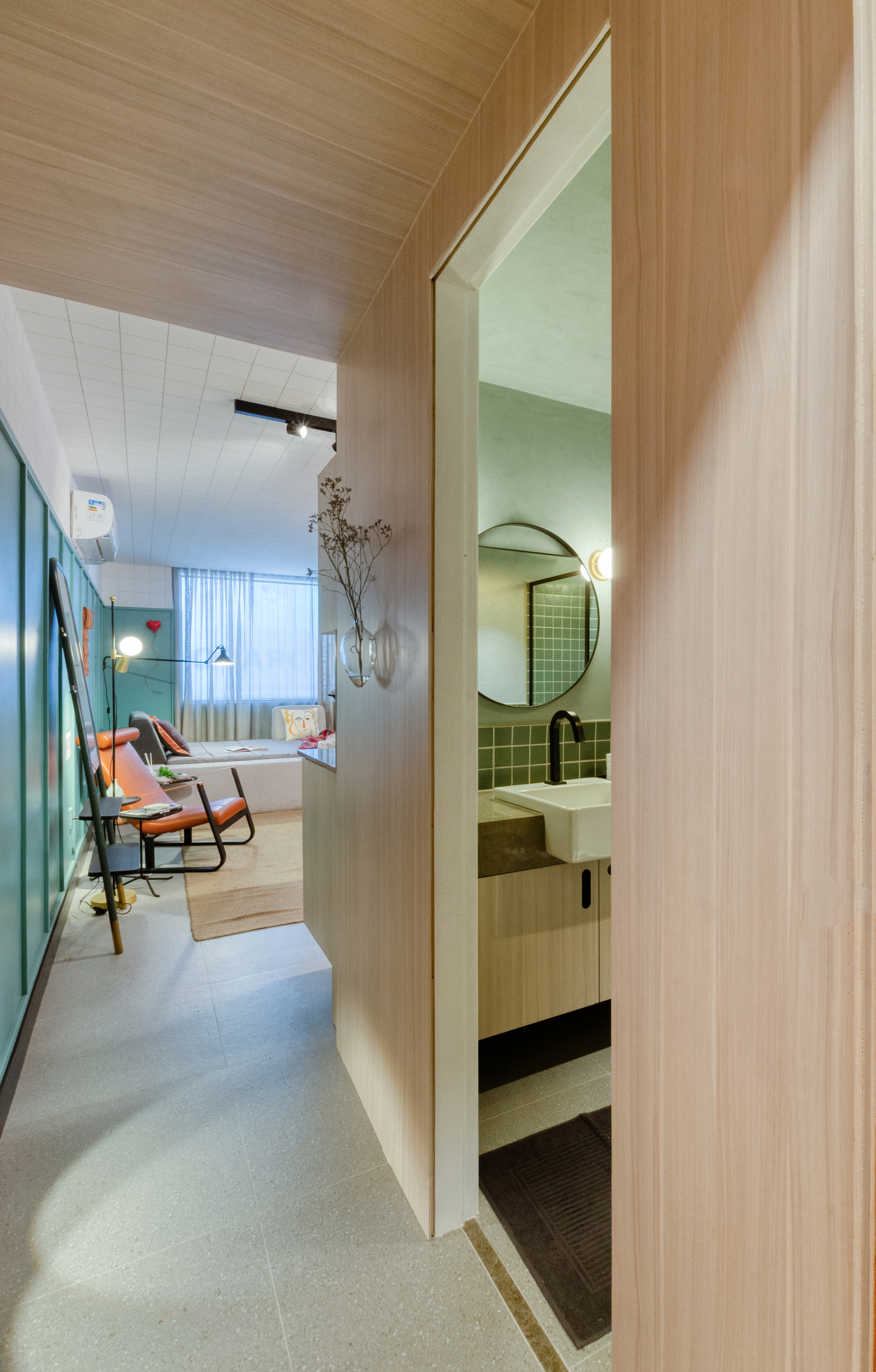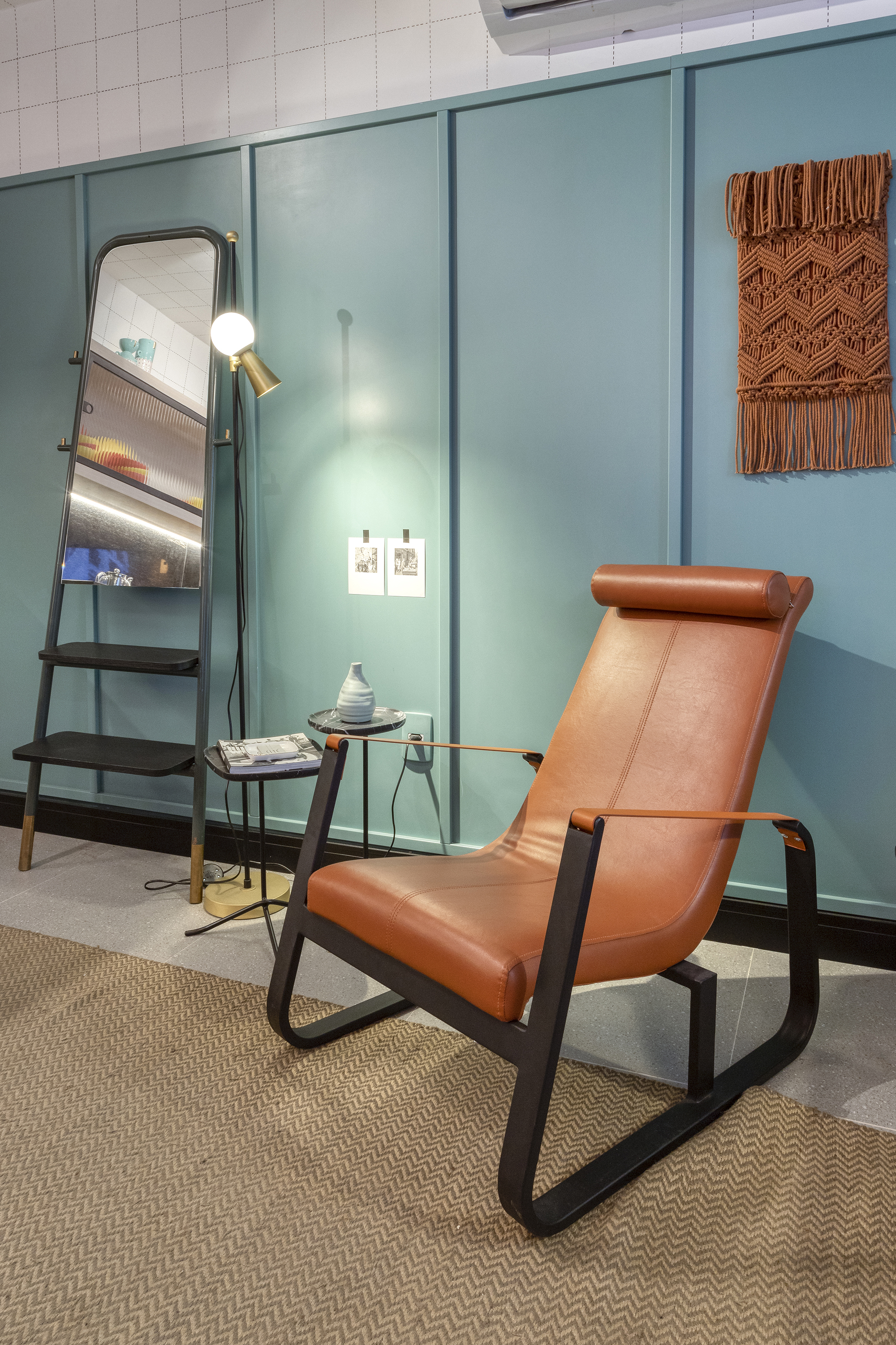 A cama, um desenho da Cité em parceria com a LZ Studio, foi o ponto central do processo criativo. A ideia foi criar um mobiliário versátil, com encostos (soltos e modulados) distintos e móveis que permitissem a multiplicidade de usos, não se limitando à sua função tradicional e podendo ser usada como um espaço de trabalho mais confortável e inesperado. A posição da televisão em relação à mesa de jantar e à cama, por exemplo, permite que ela seja usada como espelhamento do computador para apresentações e, também, para assistir televisão da cama. Já o aparador, pode ser um complemento de assentos para mesa de jantar.