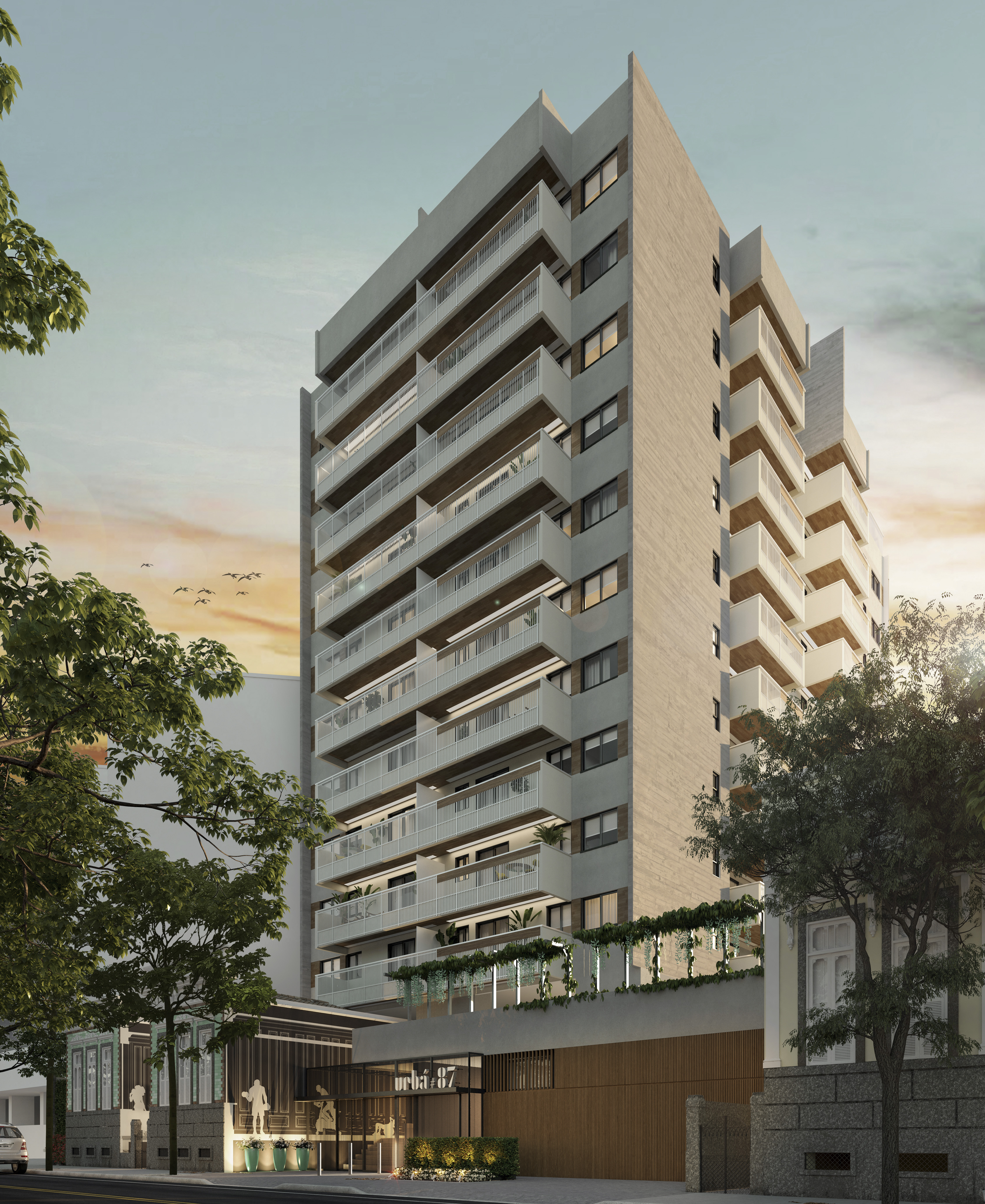Localizado na Grande Tijuca, o edifício se destaca pela pré-existência de dois sobrados no terreno, determinantes para a concepção desse projeto. Incomum no mercado imobiliário carioca, a opção de restaurar os sobrados pré-existentes, foi a principal inspiração para o desenvolvimento deste trabalho.