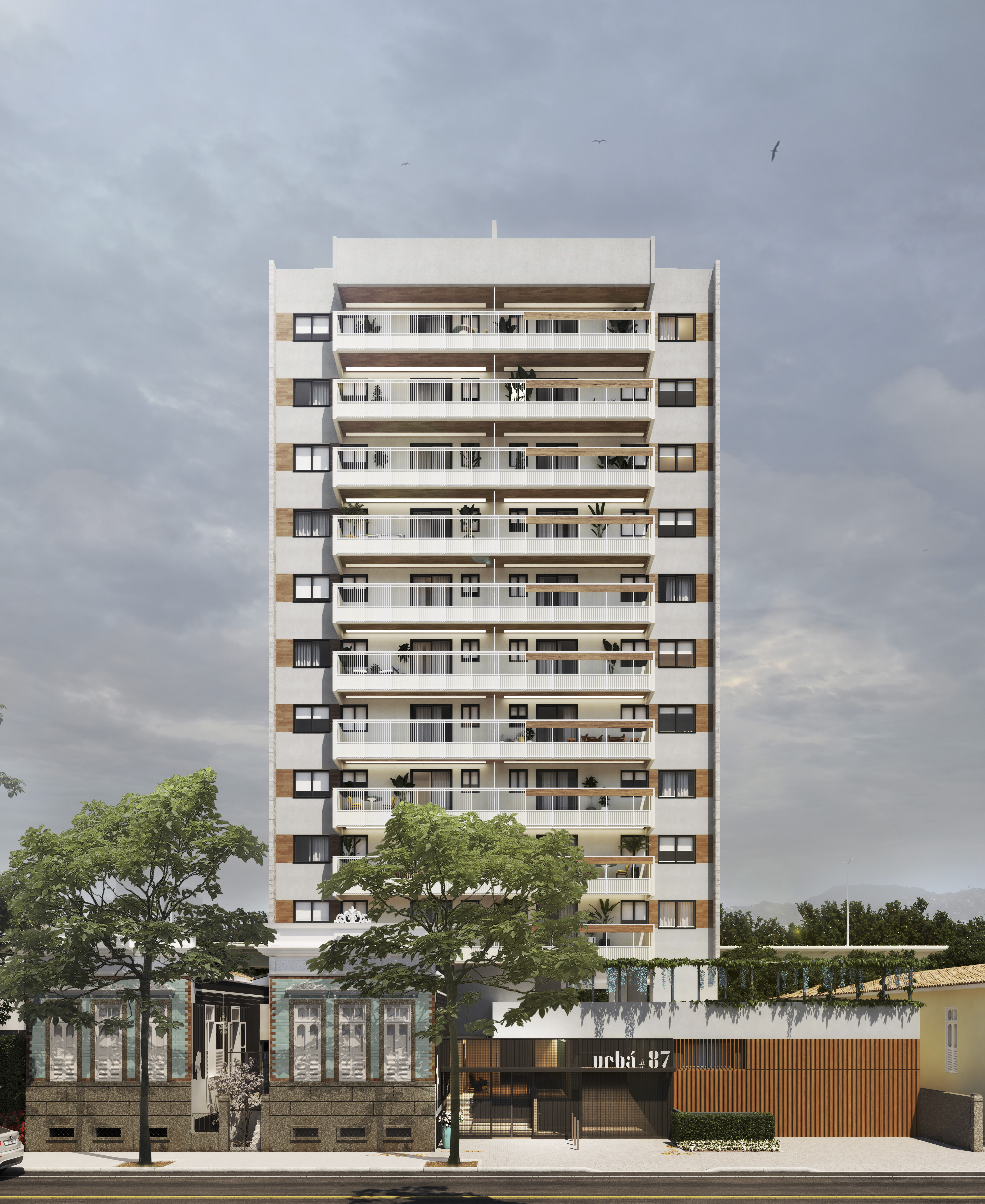 Com um conceito de integração entre dois tempos distintos, o projeto para a arquitetura do Urbá #87 une o passado histórico e até nostálgico de casas tradicionais do Rio Antigo com o presente extremamente urbanizado e a dinâmica acelerada da cidade.