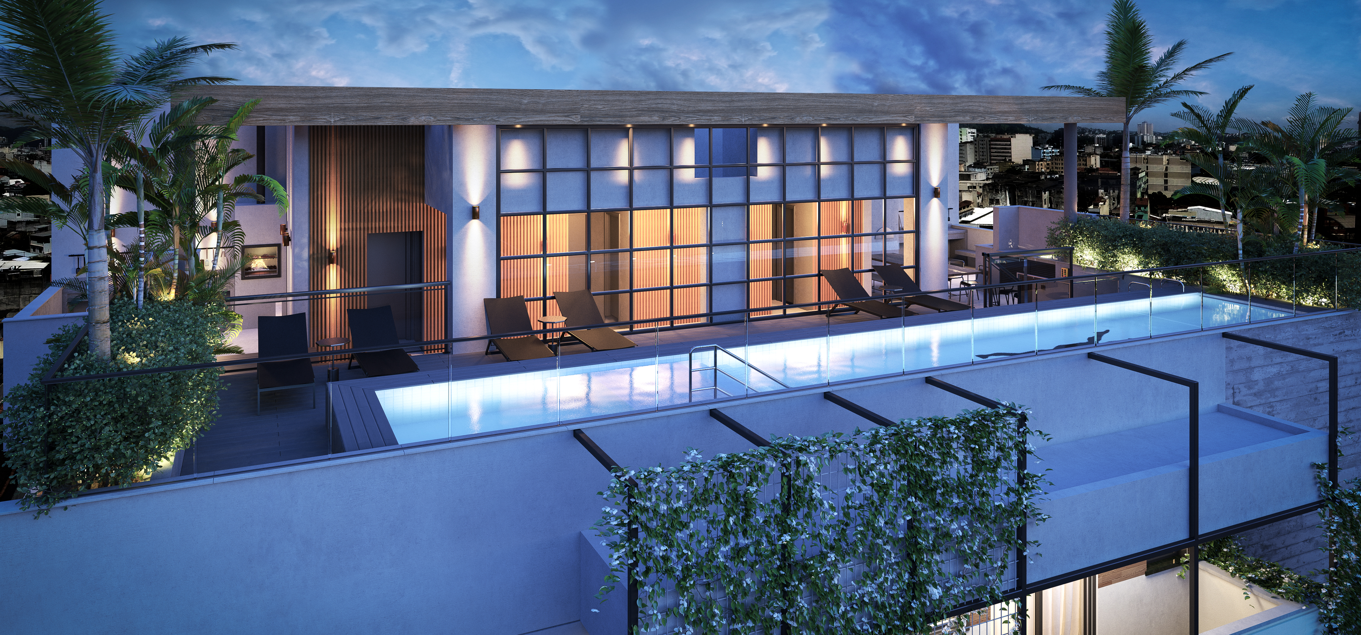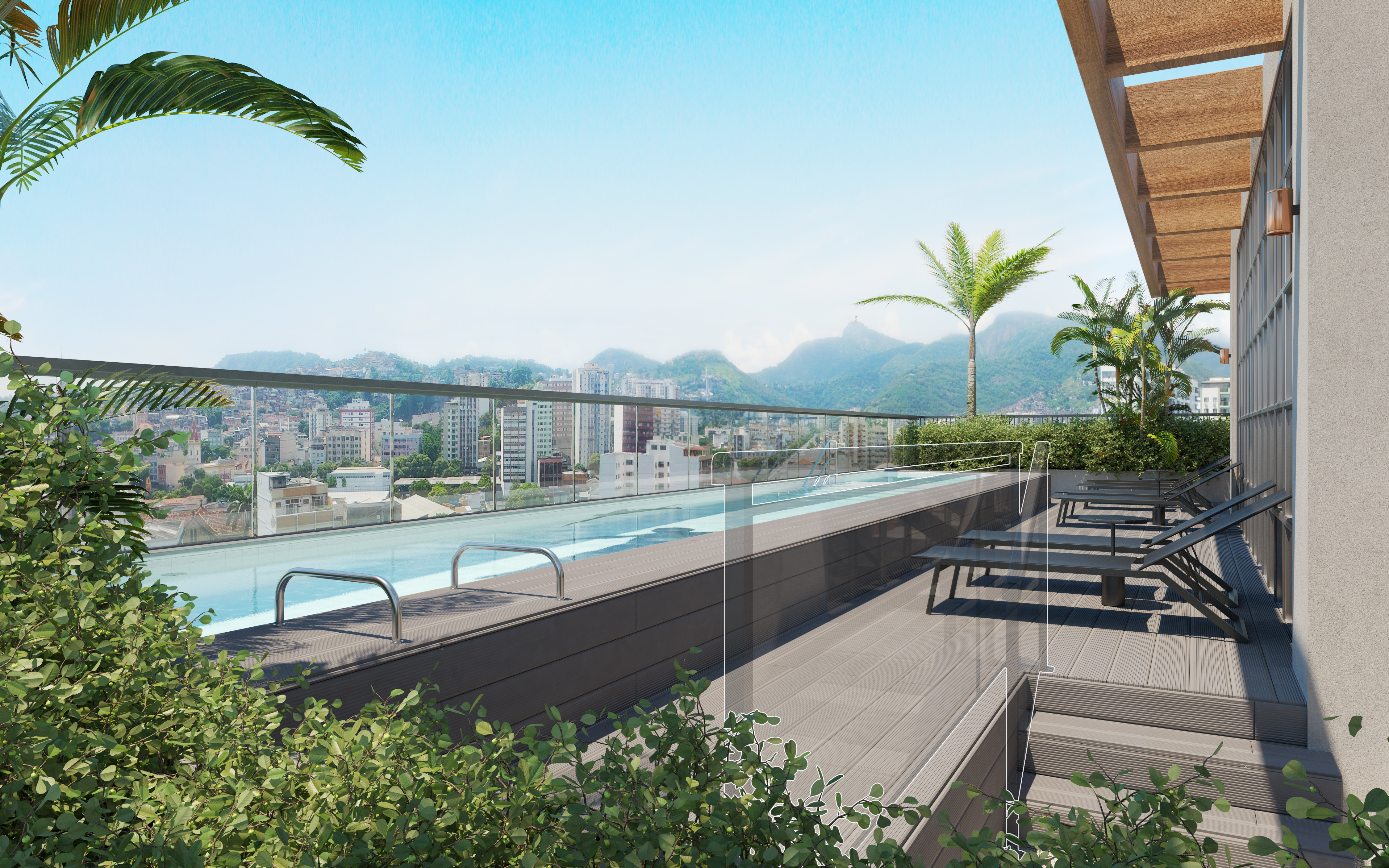 Com janelas generosas, as unidades residenciais tem iluminação e ventilação garantida, enquanto a pele verde mantém a privacidade dos moradores. Por último, no topo do edifício, uma cobertura com piscina descortina a exuberante paisagem de montanhas da cidade e o skyline de edifícios do centro do Rio.